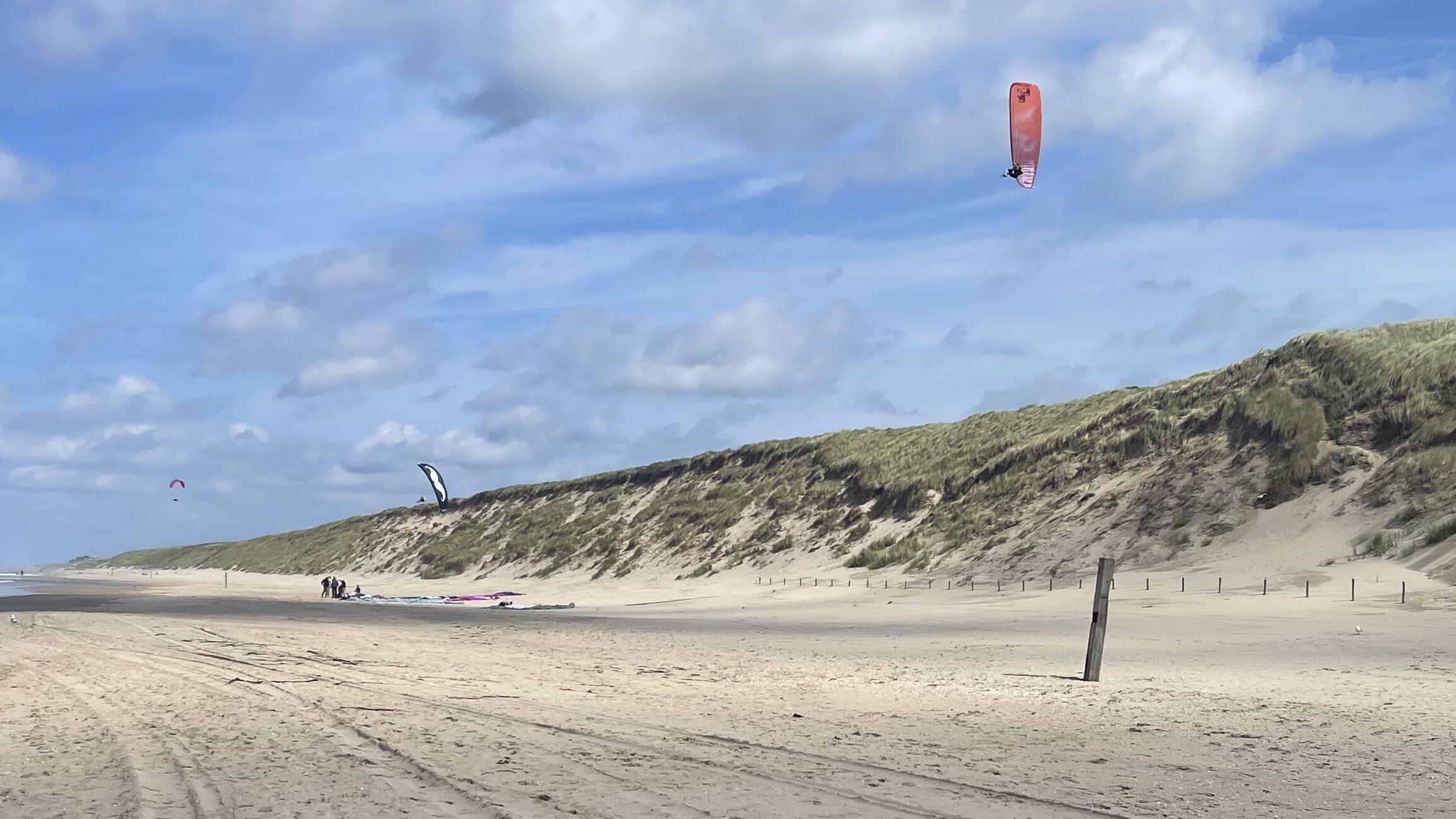 Het duin is hier mooi hoog en steil waardoor je een uitstekende liftband hebt. Voor de noordelijke startplek ga je bij de strandopgang rechtsaf. In de zomer (april tot oktober ongeveer) loop je langs een eerste set strandhuisjes. Daarna is een klein stuk waar je in principe kan vliegen als je het niet erg vindt om over een laag draadhek aan de voet van het duin heen te springen. Vervolgens is er een tweede set strandhuisjes en nog een stuk draadhek. Het beste loop je daar dus ook nog even voorbij want dan kan je vervolgens kilometers lang doorvliegen zonder obstakels, richting Egmond aan Zee. In de winter staan er geen strandhuisjes en kan je waarschijnlijk veel dichter bij de strandopgang starten (of staat daar ook nog zo’n stom draadhekje?). Vanaf de strandopgang linksaf staan eerst ook weer strandhuisjes in de zomer. Ten zuiden daarvan is het wat lastiger starten vanwege voorduintjes en weer een stuk draadhek. Ben je eenmaal in de lucht, dan kan je doorvliegen tot de (zomer) strandhuisjes en strandtent ongeveer halverwege tussen Castricum en Wijk aan Zee. Op dit hele stuk staan hier en daar stukken draadhek aan de voet van het duin.