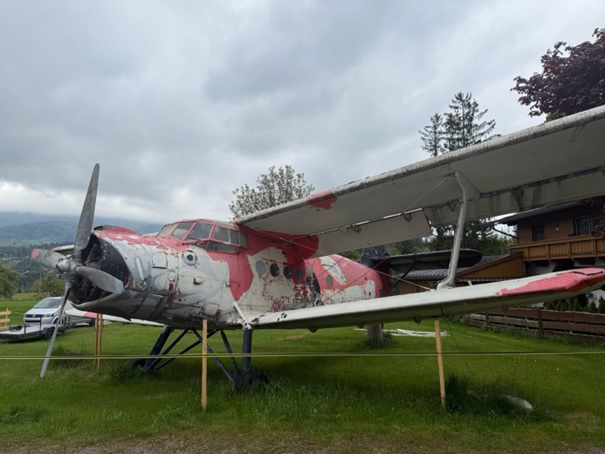 Landing 2, Fliegerbar. Dit landingsterrein ligt een klein stukje verder van de kabelbaan (ongeveer 5 minuten lopen). Ook dit is weer een erg ruim landingsterrein, direct gelegen aan de Fliegerbar. In het voorjaar was deze in verbouwing wegens wisseling van eigenaars, tijdens een tweede bezoek in september was de bar weer geopend. Vanuit de lucht is dit landingsterrein goed herkenbaar, want naast de Fliegerbar staat een enorm An-2 Dubbeldekker vliegtuig.