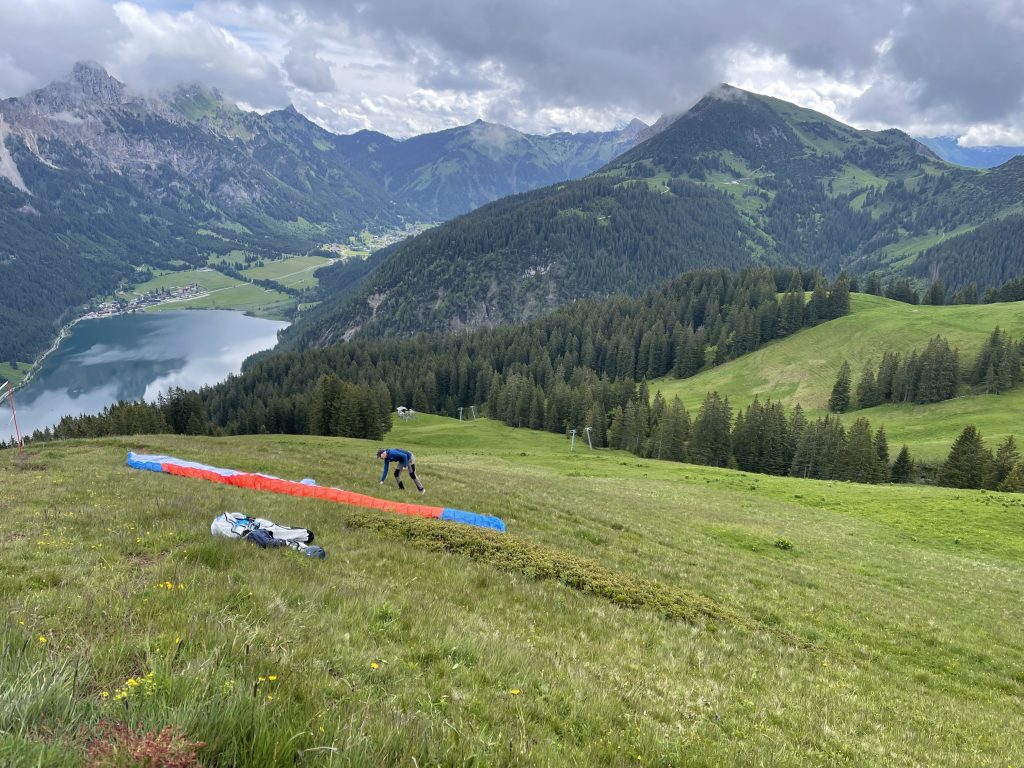 De huisbel zit boven de liftkabels, houd minimaal 50 meter afstand. Het uitzicht op de Vilsalpsee is erg mooi, maar houd er wel rekening mee dat daar een Naturschutzgebiet is waar je niet mag vliegen (check de infoborden of de site van de Delta club).