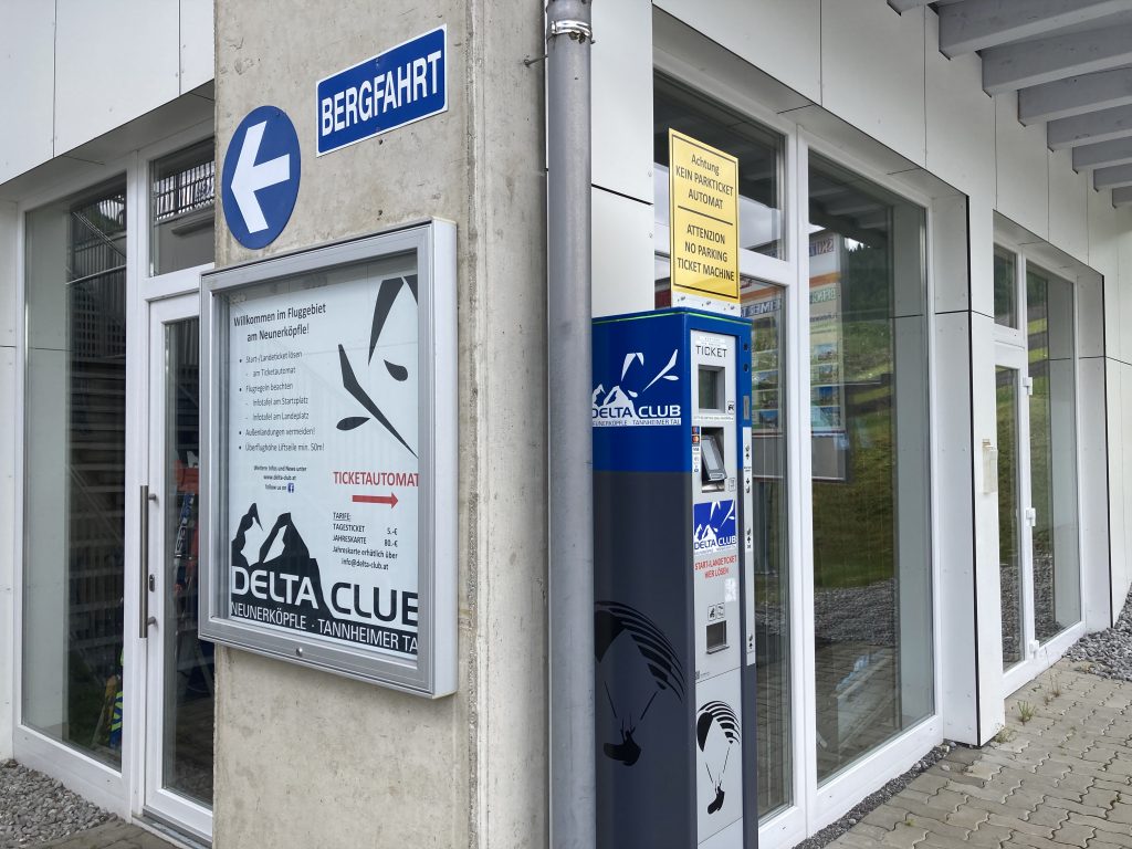 Startplek: Neunerköpfle (700m hoogteverschil) oost (foto) en west, allebei vrij klein. Check de windsok op het bergstation om een kant te kiezen. Als er weinig wind staat, is dat vaak oost in de ochtend en west in de middag. Zeker op de west start is het gebruikelijk om eerst ergens klaar te maken en met een fieldpack de startplek op te komen. Dit filmpje geeft een goed beeld. Wij waren er op een gezellig drukke vliegdag in het weekend en het was erg gemoedelijk. Iedereen hielp iedereen een beetje, waaronder ook de lokale vliegschool. Vleugel neerleggen na een afgebroken start, wingtipje uitvouwen dat was dichtgewaaid, netjes op elkaar wachten.